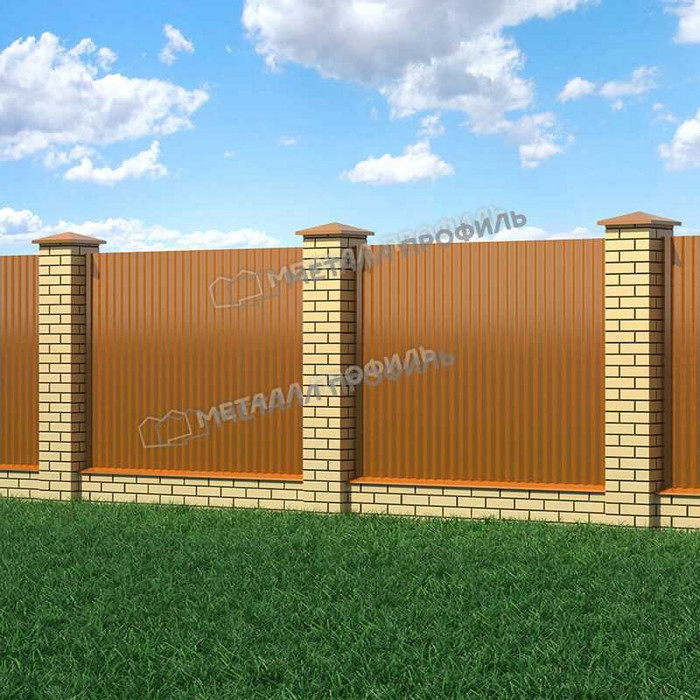 ® отличается высокими декоративными показателями. Покрытие производится в необычном медном цвете, который эстетично смотрится независимо от климатических и погодных условий. Профилированный лист под медь будет привлекать внимание прохожих. Подчеркните индивидуальность забора с профилированным листом Agneta