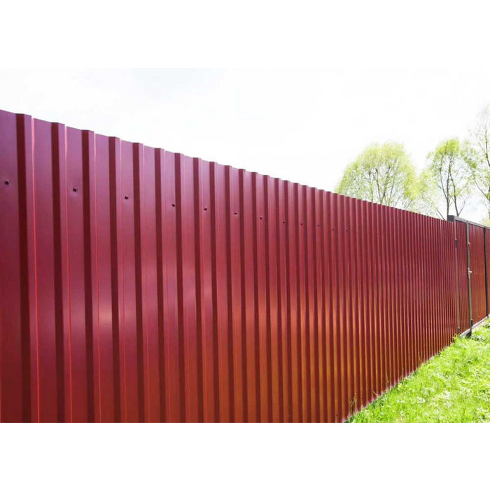 Профилированный лист МП-20x1100-A NormanMP (ПЭ-01-3005-0,5) — популярный материал в Кузнечном для монтажа забора. Изначально он представляет собой металлический оцинкованный лист с покрытием. Общая толщина металла с оцинковкой и декоративно-защитным покрытием — 0.5 мм. Проходя процедуру холодного проката, металл принимает волнообразный вид. Такая конфигурация придает профилю жёсткость.