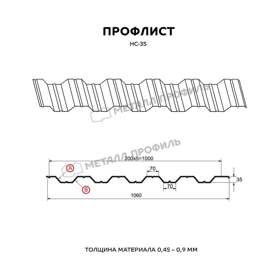 Многофункциональный и выгодный стройматериал с одинаковым с обеих сторон профилем. Пометка НС означает, что профнастил этот – и «несущий», и «стеновой». Он пользуется спросом как для гражданского строительства, так и при возведении крупных объектов. Из профлиста с высотой волны в 35 мм создаются конструкции очень разного плана: ограждения частных и общественных территорий, быстровозводимые сооружения ( навесы, павильоны ), каркасные здания ( склады, цеха, торговые центры ), обустройство кровли. Отличную способность выдерживать нагрузки НС-35 придают специальные рёбра жёсткости, которые расположены на лицевой и внутренней сторонах листа. Рабочая ширина материала достигает 1000 мм при габаритной ширине 1060 мм, то есть при монтаже данного профиля в боковое соединение скроется 60 мм. Толщина стали колеблется в диапазоне от 0,5 до 0,9 мм – это влияет не только на механическую стойкость стройматериала, но и его вес. Полимерно-защитный слой из ассортимента Компани Металл Профиль добавит материалу дополнительную стойкость к коррозии и УФ-излучению.