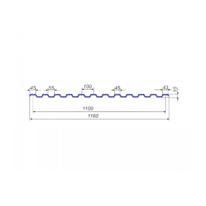 Профнастил СС-10 имеет симметрично равнополочную трапециевидную форму. Подобная модификация и толщина металла от 0,4 до 0,9 мм делают этот стройматериал отличным универсальным вариантом. Профнастил СС-10 гармонично совмещает в себе прочностные параметры с эффектным обликом. В качестве исходного сырья для изготовления СС-10 выступает оцинкованная тонколистовая сталь. Она прекрасно переносит даже тяжёлые климатические нагрузки: агрессивный ультрафиолет, ветер, тяжёлый снег. А защитное полимерное покрытие дополнительно предотвращает ржавение и прочие окислительные реакции.